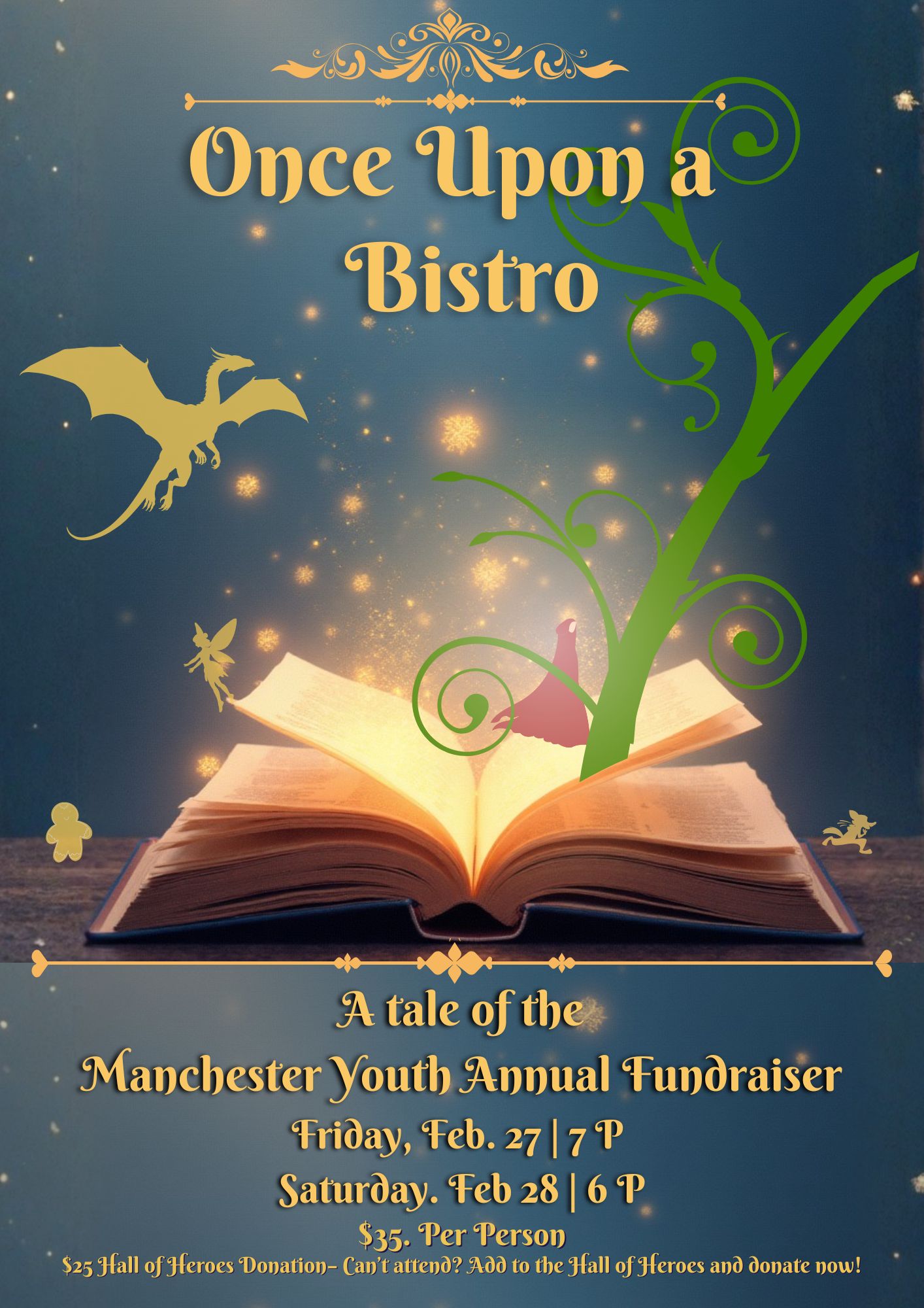 ONCE UPON A BISTRO Night at the Bistro is the annual fundraiser for Manchester Youth! This special annual event features a deluxe four-course meal,